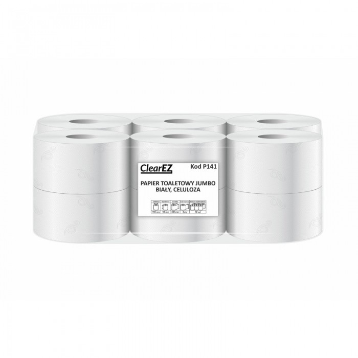 Papier toaletowy ClearEZ w rozmiarze Jumbo to idealne rozwiązanie dla obiektów użyteczności publicznej, biur oraz sektora HoReCa. Wykonany z wyselekcjonowanej, czystej celulozy, łączy w sobie wyjątkową miękkość z dużą wytrzymałością, co przekłada się na wysoki komfort użytkowania oraz oszczędność eksploatacyjną.