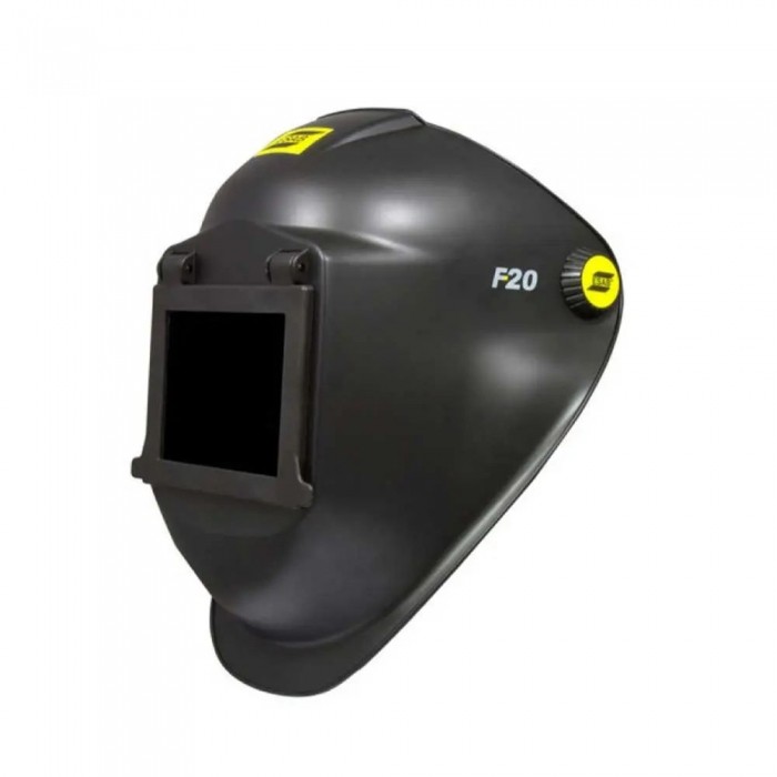 Przyłbica z podnoszoną osłoną ESAB F20 90x110, w której to mieści się filtr spawalniczy. Zawiera ona również szybkę chroniącą twarz gdy osłona przyłbicy jest podniesiona. Posiada filtr spawalniczy DIN10 zgodny z CE - EN175. Dwa warianty podnoszonej osłony: 60x110 lub 90x110 mm (należy wybrać wielkość podczas zamawiania). Korpus przyłbicy spawalniczej jest lekki oraz zawiera wygodne nagłowie. Dodatkowo można w niej wymieniać szybki ochronne z różnym stopniem DIN. Zawiera wewnętrzną szybkę ochronną.